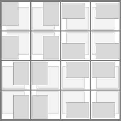 See the scrap map showing 16 different way you can arrange the two pieces. I’ve arranged them in pairs, but use them however they work with your pictures.
