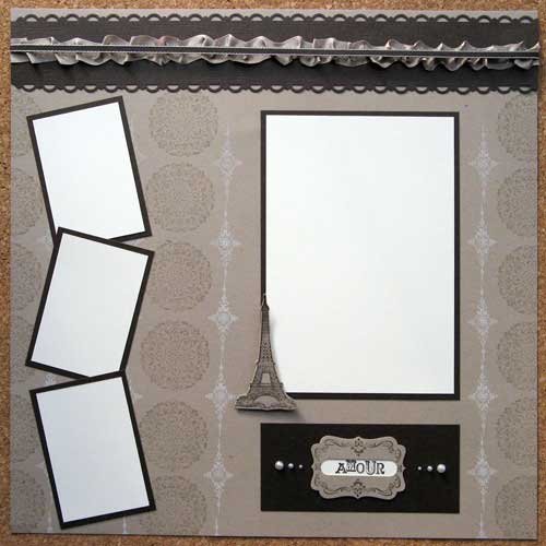 This scrapbook page has a soft and romantic feel, ideally suited to weddings and anniversaries. The colour scheme is designed to work with sepia toned photos but could easily be adapted to match the colour scheme of your couple’s wedding.