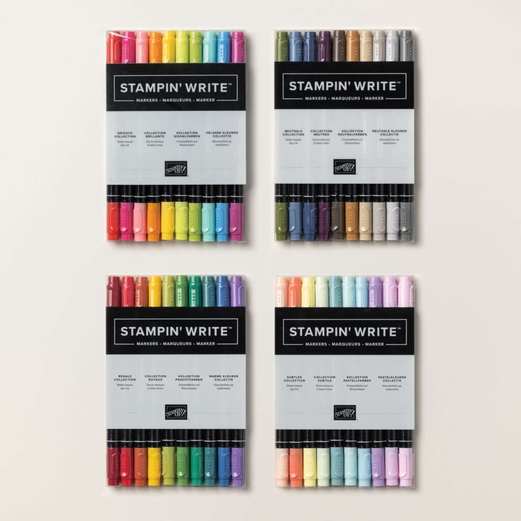 Stampin’ Write Markers. With the switch to all photopolymer stamps, and with the success of the alcohol based Stampin’ Blends markers, Stampin’ Up! has decided to stop production of the water/dye-ink based markers. You’ll find them in the Last Chance category in the online store, and available while supplies last. I am sad to see them go! I love using them for direct to (rubber) stamp techniques, and I like writing with them, and love the colour coordination with SU colours. I will be hanging on to my collection to continue to use with the red rubber stamps in my collection – plus I like to use them in my journal!