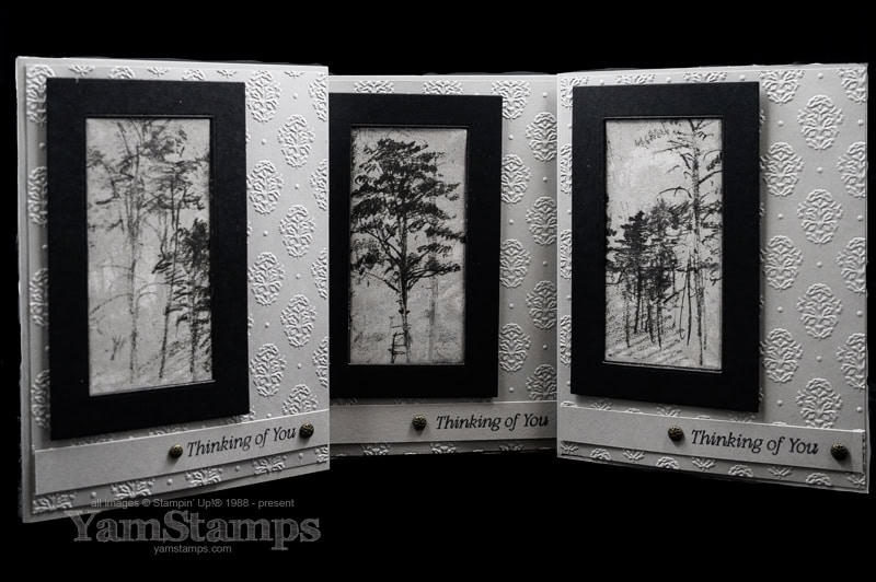 Accessories/Tools: Stampin’ Cut & Emboss Machine; Branching Out Dies; Streaked Dots^; Irregular Weave 3/8″ Trim^