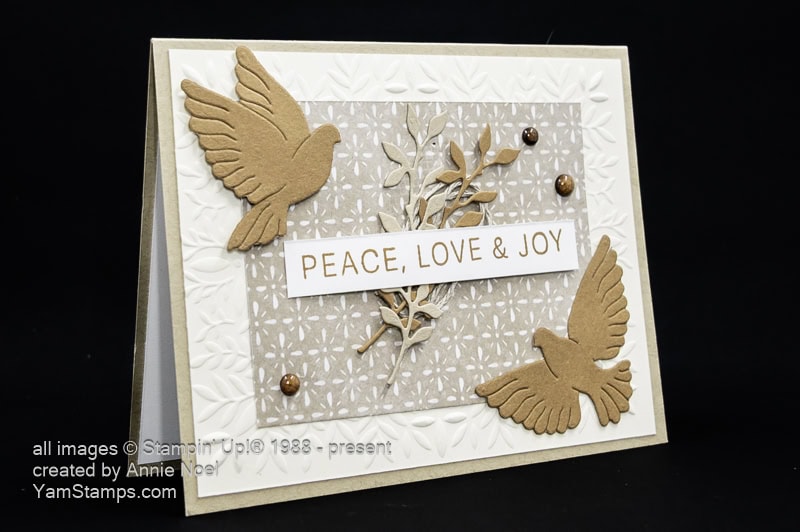 Accessories/Tools: Stampin’ Cut & Emboss Machine; Peace on Earth Dies; Peaceful Greenery 3D Embossing Folder; Streaked Dots