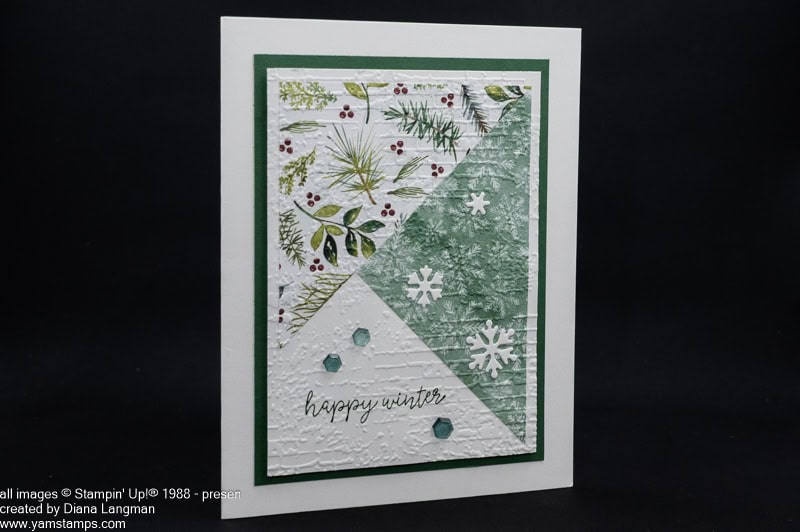 Accessories/Tools: Stampin’ Cut & Emboss Machine; Snowflake Kisses Dies*; Exposed Brick 3D Embossing Folder; Shades of Green Hexagons
