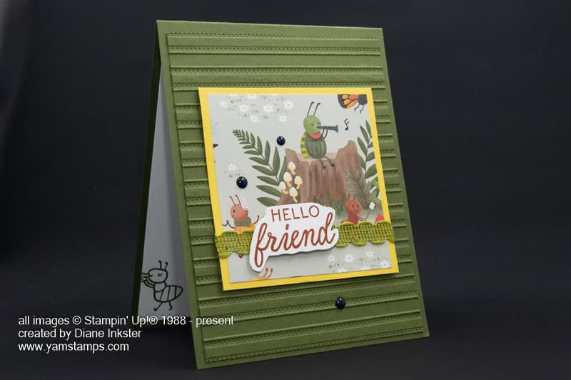 Paper: Basic White Cardstock; Mossy Meadow Cardstock; Daffodil Delight Cardstock; Cute as a Bug Designer Series Paper