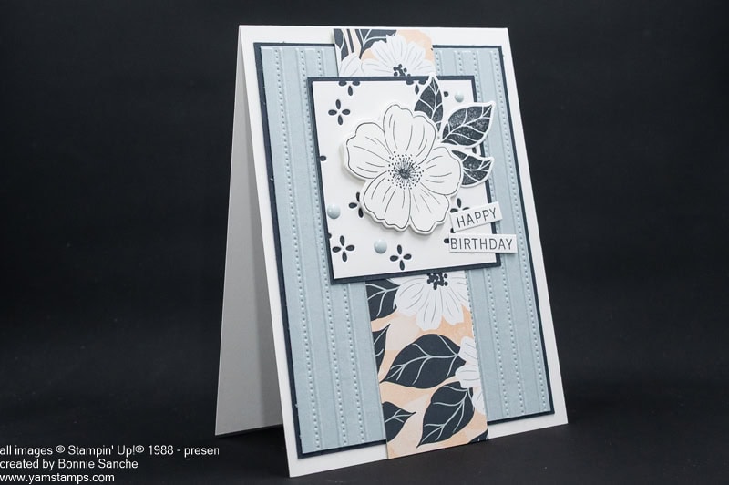 Paper: Basic White Cardstock; Misty Moonlight Cardstock; Balmy Blue Cardstock; Peaceful Garden Designer Series Paper