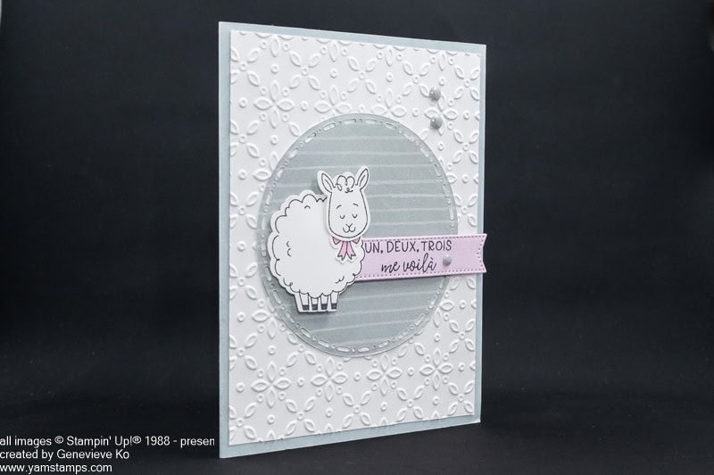 Accessories: Stampin’ Cut & Emboss Machine; Layering Circles Dies; Gingham Embossing Folder; Pebbles Enamel Shapes; 1/8″ Cotton Ribbon Combo Pack